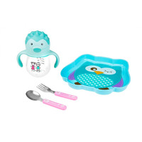 Presentiamo il piatto in plastica AKUKU. È stato progettato per motivare il bambino a mangiare in autonomia grazie alle sue forme e colori. È realizzato con materiali sicuri per il contatto con gli alimenti. Disponibile in due varianti: elefante e gufo.