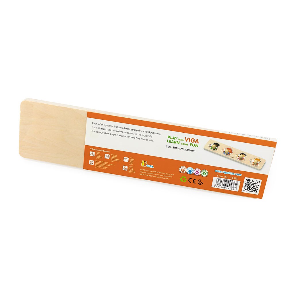 Bellissimo e colorato puzzle di legno per bambini con maniglie Viga. Grazie alle maniglie, il puzzle è più facile da tenere in mano per i bambini e possono inserirlo più facilmente nei posti designati. Aiuta anche a migliorare la manualità e l'agilità, insegnando al bambino a riconoscere forme e colori. Contribuisce allo sviluppo della motricità, migliora la coordinazione e le capacità osservative del bambino. La confezione contiene 4 pezzi. Adatto per bambini a partire da 12 mesi. Il primo puzzle per i tuoi piccoli, con colori molto vivaci, design semplice e pezzi grandi. La nostra priorità è la sicurezza e la qualità dei nostri prodotti, pertanto i colori utilizzati nei giocattoli non sono tossici e soddisfano gli standard di sicurezza (EN71 e ASTM). Il giocattolo è adatto anche come bel regalo per i più piccoli. Dimensioni: 32x3x7,5 cm