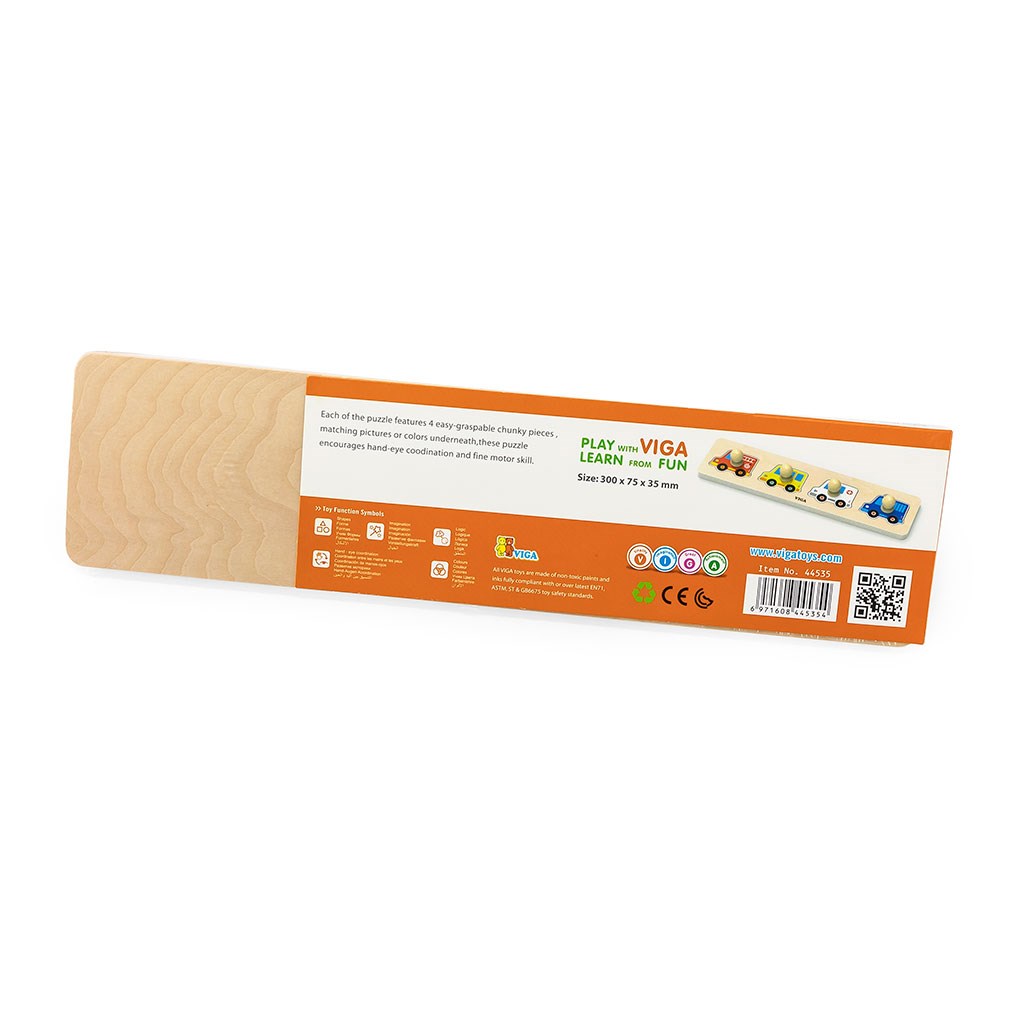 Puzzlete in legno colorato e bellissimo per bambini con maniglie Viga Auto. Grazie alle maniglie, i bambini possono tenere meglio i pezzi del puzzle tra le dita e inserirli più facilmente nei posti designati. Aiuta anche a migliorare la manualità e la destrezza, insegnando nel contempo ai bambini a riconoscere forme e colori. Contribuisce allo sviluppo motorio, migliora la coordinazione e le capacità di osservazione dei bambini. La confezione contiene 4 pezzi. Adatto per bambini a partire da 12 mesi. Il primo puzzle per i vostri piccoli, con colori molto vivaci, design semplice e pezzi grandi. La nostra priorità è la sicurezza e la qualità dei nostri prodotti, per questo i colori utilizzati sui giocattoli non sono tossici e soddisfano gli standard di sicurezza (EN71 e ASTM). Questo giocattolo è anche un bellissimo regalo per i più piccoli. Dimensioni: 32x3x7,5 cm