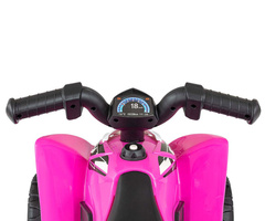 Le grosse e larghe ruote con battistrada off-road garantiscono mobilità durante le escursioni e il sedile sagomato offre un comfort e una sicurezza adeguati per i più piccoli. La stabilità e la resistenza del quad sono garantite dagli assi delle ruote in acciaio. Il veicolo è dotato anche di un clacson, che rende il divertimento ancora più interessante.