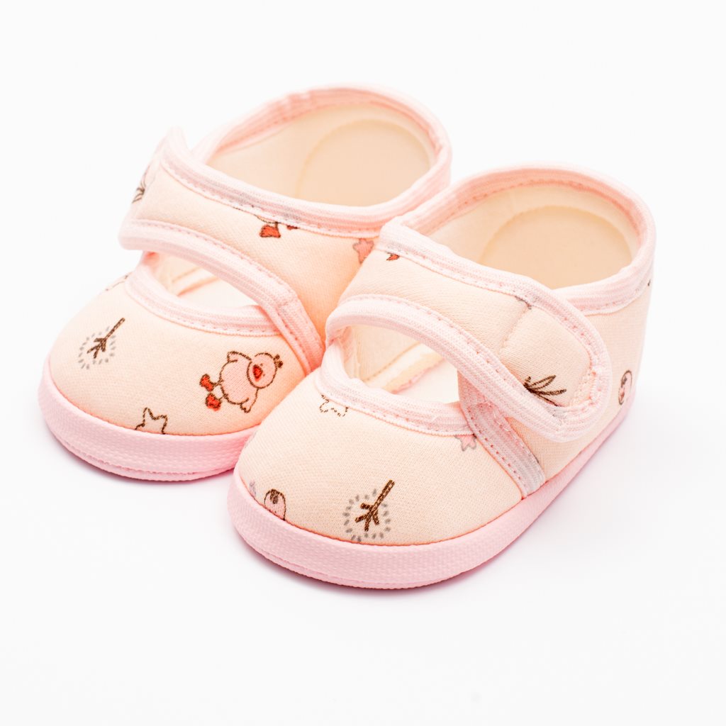 Scarpe da neonato New Baby per i bebè. Bellissime scarpine dal design moderno con chiusura in velcro. Le scarpine aderiscono al piedino e hanno un interno ampio, permettendo il libero movimento delle dita e dei muscoli. Il prodotto non è destinato a camminare. Sono molto leggere con una suola sintetica sottile. Composizione: 100% cotone. Suola: materiale sintetico PVC privo di BPA. Lunghezza della soletta interna 10 cm. Destinate a bambini da 0 a 3 mesi. Fornite in una pratica scatola. Avviso: sotto la soletta in tessuto si trova a volte un inserto di carta che mantiene la forma della scarpina. Rimuovere questo inserto di carta prima del primo utilizzo.
