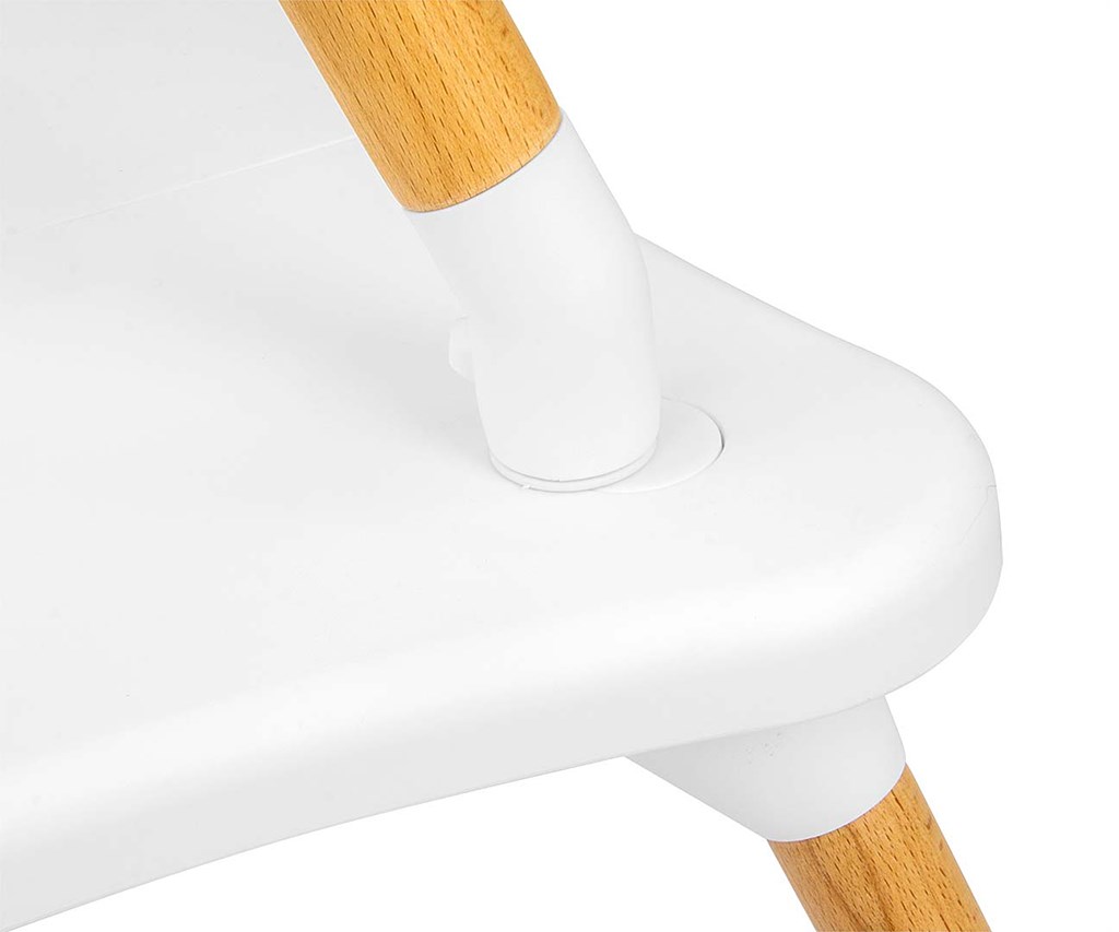 - Ampia distanza tra le gambe della base garantisce stabilità alla sedia alta, anche quando il bambino è attivo