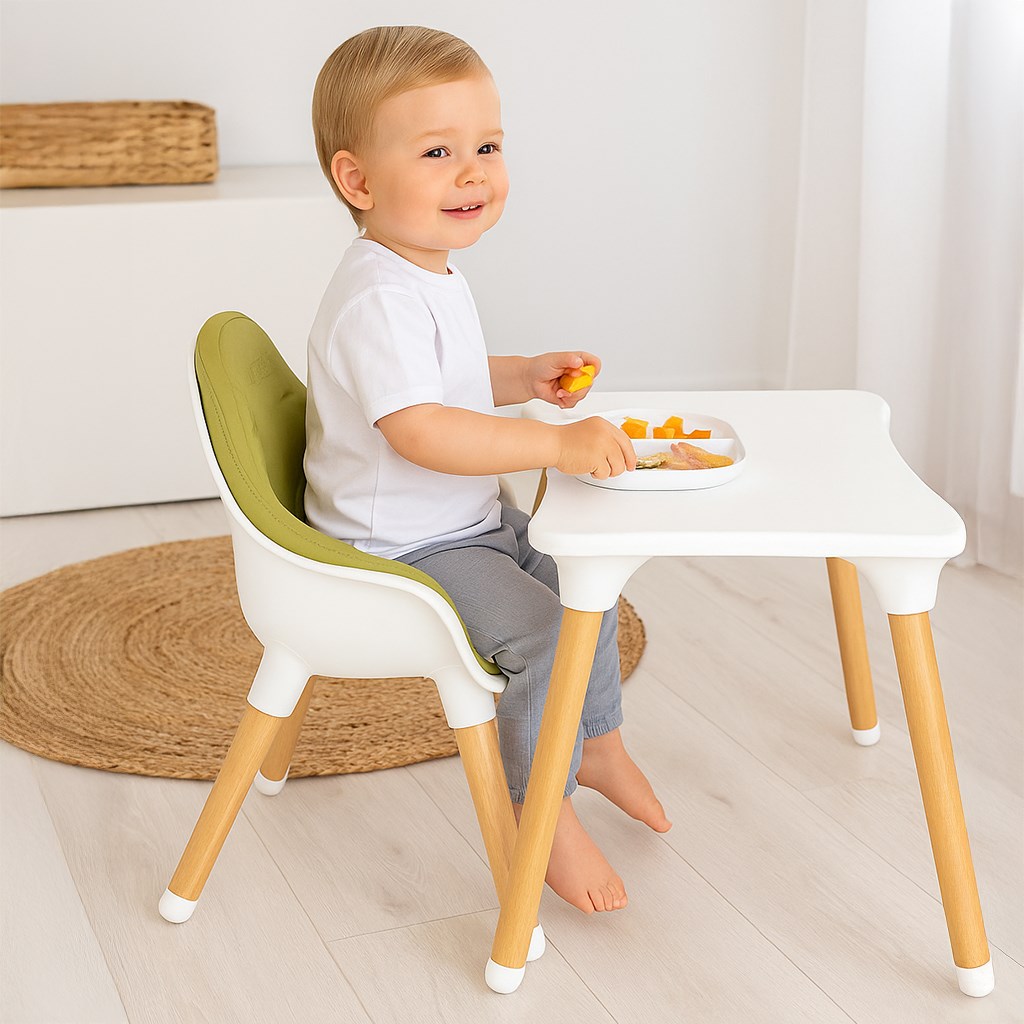 - Sedia pranzo che combina 3 funzioni: sedia alta e bassa o set tavolo e sedia.