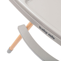La seggiolina Baby Mix ha tutte le caratteristiche che semplificano l'alimentazione quotidiana: vassoio doppio regolabile, cinture a 5 punti, rivestimento rimovibile in eco-pelle, poggiapiedi, cestino in tessuto, piedini antiscivolo. La sedia può essere facilmente trasformata in una sedia bassa rimuovendo la parte inferiore delle gambe. La seggiolina Baby Mix è adatta per bambini dai 6 ai 36 mesi.