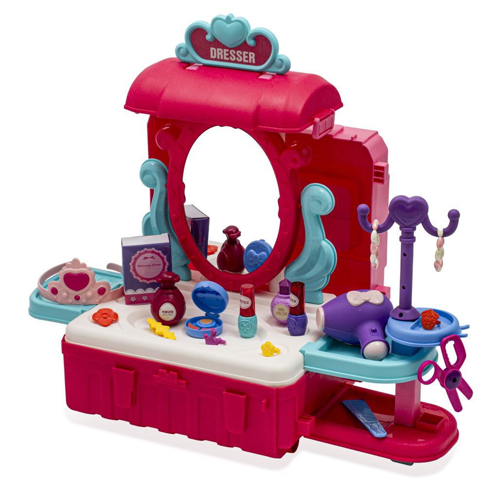 Beauty case da ragazza 3 in 1 è un accessorio pratico e stiloso per tutte le amanti della bellezza. Questo beauty case contiene modelli di prodotti cosmetici che permettono alle ragazze di sperimentare con il trucco e la cura della pelle.