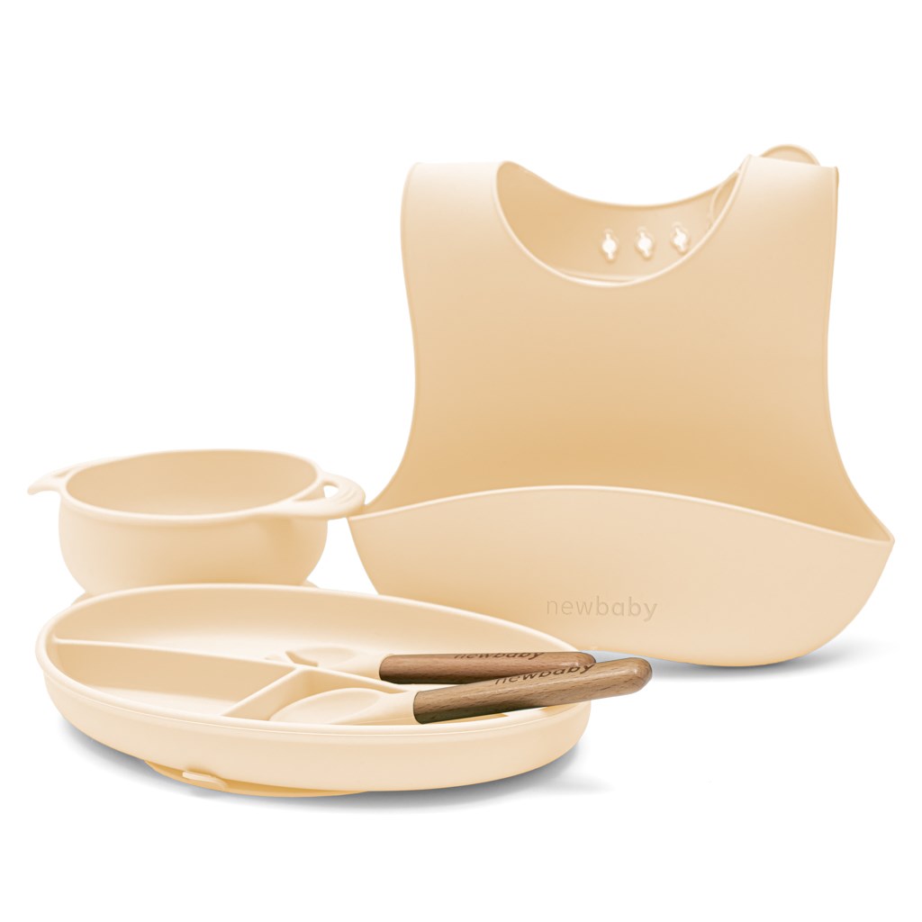 Presentiamo il elegante e pratico set in silicone New Baby, progettato con amore per i bambini e con attenzione al comfort dei genitori. Questo set è ideale per la pappa quotidiana e come regalo perfetto.