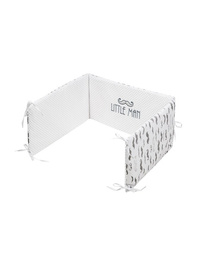 Set di biancheria da letto in cotone per bambini Belisima Little Man, composto da 5 pezzi. Il set è decorato con originali immagini di baffi e colori piacevoli. È realizzato in materiale morbido e piacevole al tatto. Il set include una federa per cuscino di circa 40x60 cm, una coperta di circa 100x135 cm, un paracolpi di circa 180 cm, e l'imbottitura per il cuscino e la coperta. Materiale 100% cotone.