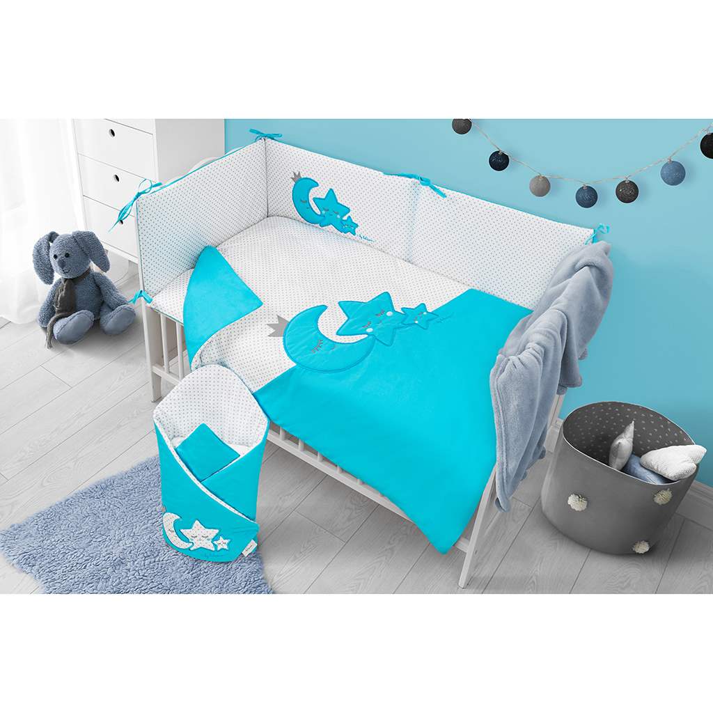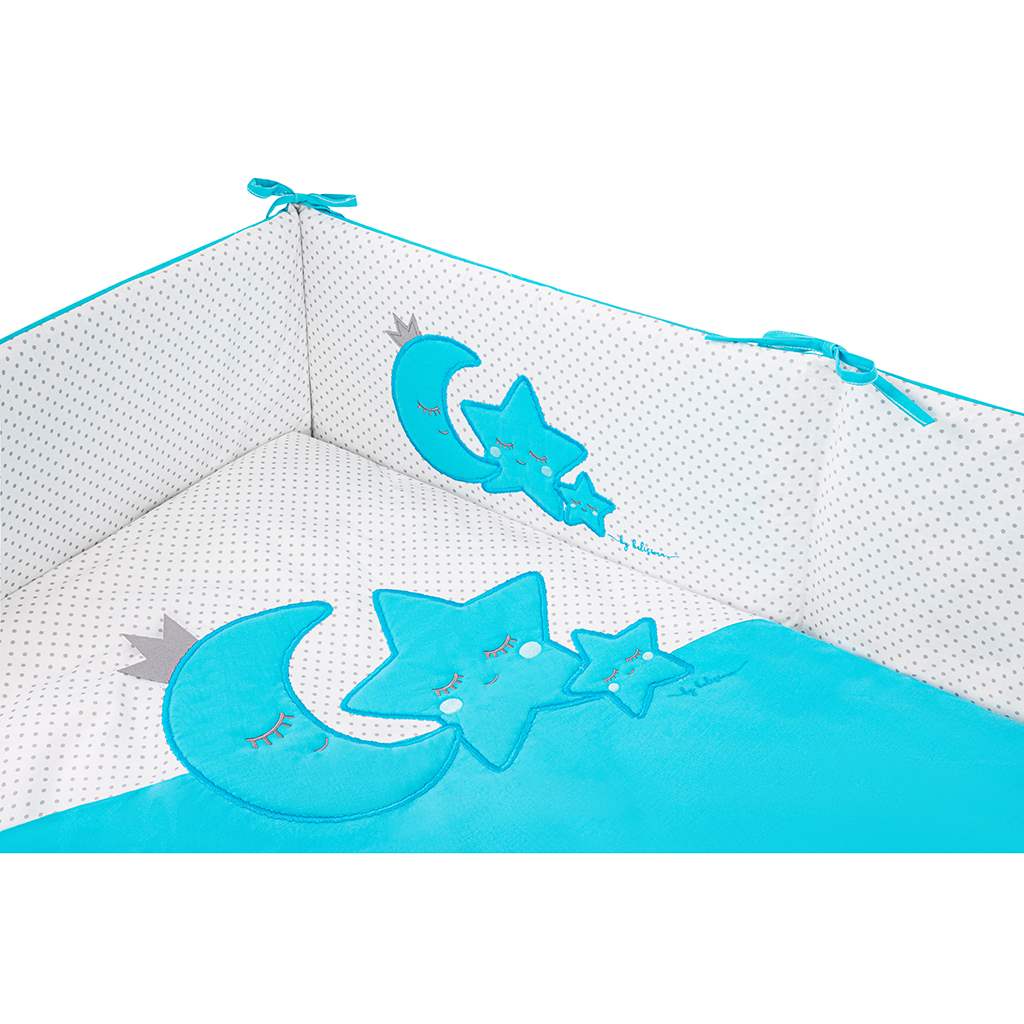 Bellissimo set da letto in cotone per bambini 6 pezzi Belisima Magic Stars per neonati. È realizzato in materiale morbido e piacevole. Il set include una federa per cuscino di circa 40x60 cm, un copripiumino di circa 100x135 cm, un paracolpi di circa 180 cm, imbottitura per cuscino e coperta, e un velo. Materiale 100% cotone.