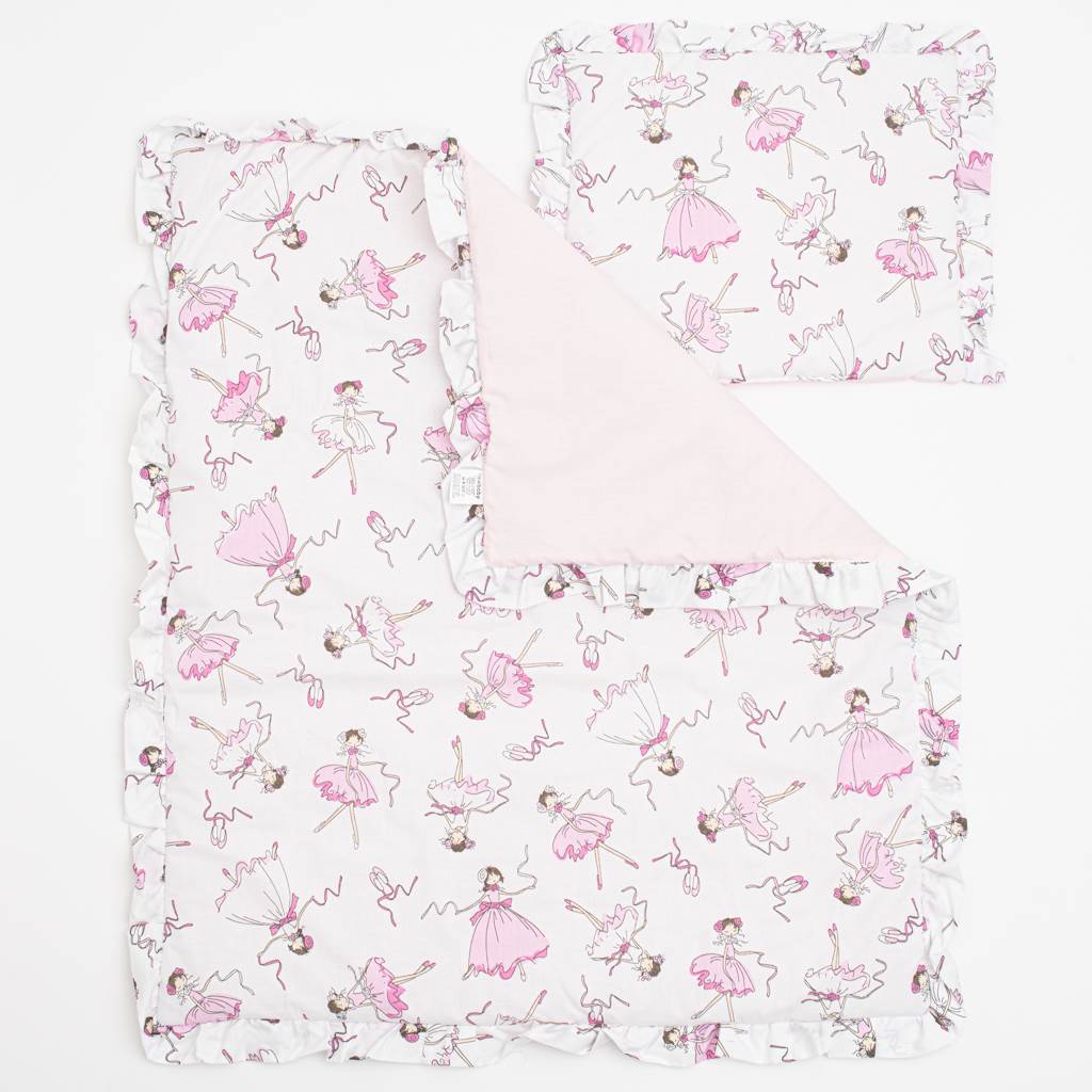 Set da carrozzina New Baby Ballerina Bella in cotone meraviglioso. Il set include un cuscino e una coperta con volant e una stampa di una fatina ballerina che danza. Tutto è imbottito con fibra anallergica. Il set è realizzato in cotone di alta qualità. Il set in cotone coccola e riscalda delicatamente la pelle del tuo bambino. Dimensioni: cuscino: circa 32x25 cm, coperta: circa 82x68 cm. Composizione: rivestimento 100% cotone, imbottitura 100% poliestere.