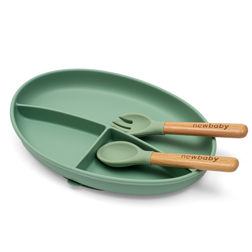 - Un piatto con ventosa e pratico suddivisione in 3 parti (22 x 15 cm) – garantisce che ogni pietanza rimanga al suo posto.