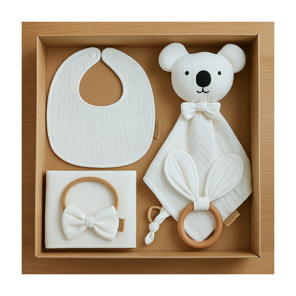 L'intera scatola è curata, delicata ed elegante — ideale per il neonato e perfetta come regalo pieno di cura e della massima qualità.