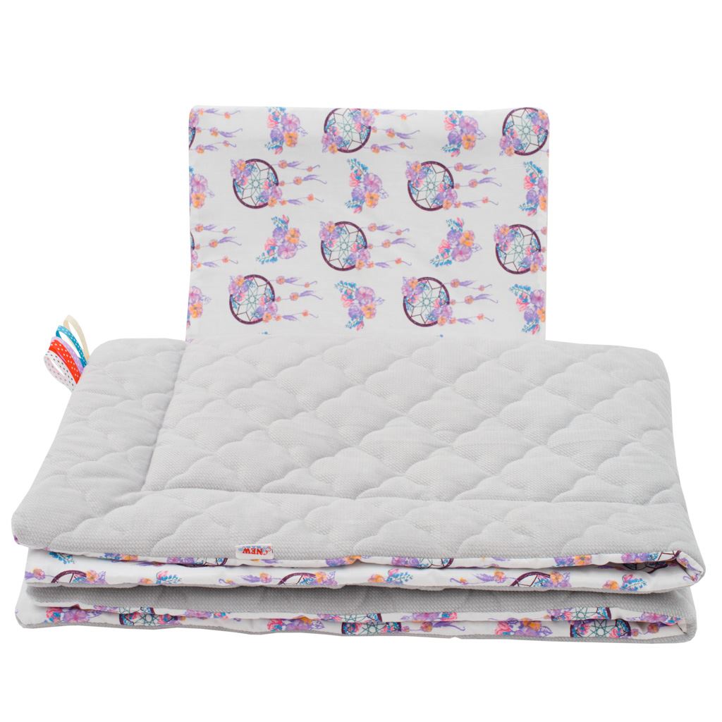 set reversibile bellissimo in Velvet di New Baby per passeggino. Il set è realizzato con due tipi di tessuti. Il materiale in cotone con una stampa moderna garantisce comodità al neonato, mentre il materiale Velvet è molto piacevole al tatto e mantiene a lungo la sua forma originale. È ideale sia per i neonati fin dalla nascita, sia per bambini più grandi, da utilizzare come coperta per giocare, nel passeggino o all'aperto. Il set comprende un cuscino e una coperta. Sulla coperta sono cucite fasce colorate che attirano ulteriormente l'attenzione del bambino. Poniamo enfasi sulla qualità e per questo il set in Velvet è realizzato con materiali di alta qualità, che non perdono colore e non provocano reazioni allergiche. Il set è morbido al tatto, caldo, coccoloso, unico e molto diverso dagli altri. Tutto è riempito con fibra anallergica. Composizione: da un lato 100% cotone stampato con una bella fantasia per bambini, dall'altro lato è tessuto Velvet - 100% poliestere, imbottitura 100% fibra anallergica. Il materiale è conforme allo standard Oeko-Tex Standard 100. Dimensioni: cuscino: circa 30x35 cm, coperta: circa 75x100 cm. Questi prodotti sono sicuri perché: