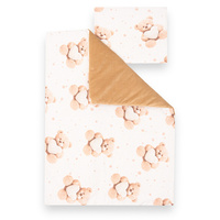 Set New Baby Safari per passeggino, bellissimo e reversibile. Il set è realizzato in due tipi di tessuti. Da un lato, materiale in cotone con un bellissimo motivo per bambini e dall'altro lato, materiale in velluto. Il velluto è molto morbido e piacevole al tatto, mantenendo a lungo la sua forma originale. È ideale sia per neonati che per bambini più grandi, utilizzabile come coperta per giocare, nel passeggino o all'aperto. Il set comprende un cuscino e una coperta. Poniamo grande attenzione alla qualità, perciò il set in velluto è cucito con materiali di altissima qualità che non sbiadiscono e non causano reazioni allergiche. Il set è morbido al tatto, caldo, avvolgente, unico e molto diverso dagli altri. È riempito con fibra anallergica. Composizione: da un lato 100% cotone stampato con un bel motivo per bambini, dall'altro lato tessuto in velluto - 100% poliestere, imbottitura 100% fibra anallergica. I materiali sono conformi allo standard Oeko-Tex Standard 100. Dimensioni: cuscino: circa 30x25 cm, coperta: circa 75x50 cm. Questi prodotti sono sicuri perché: