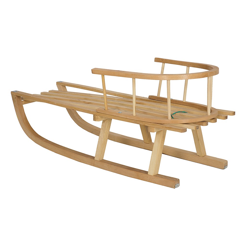 Slittini in legno per bambini con schienale e corda realizzati in pregiato legno di faggio (legno duro resistente ai danni).