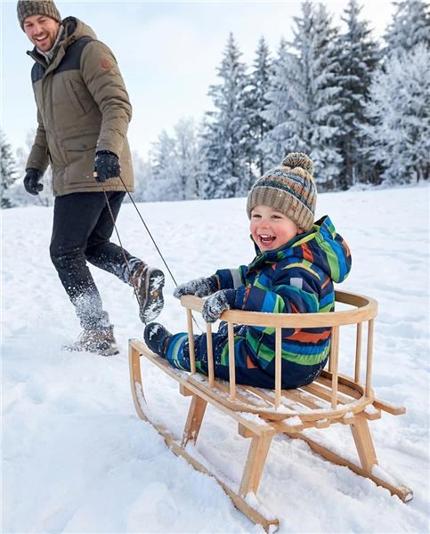 Il set comprende: slittino, schienale, corda con manico in legno. Il legno è verniciato con vernice ecologica trasparente, mantenendo così il suo colore e la sua struttura naturali.