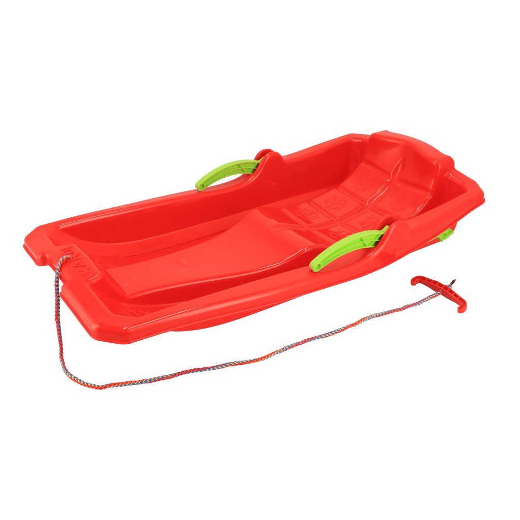 Slittino in plastica con freni Baby Mix KAROL. Questo modello, grazie ai freni, consente una fermata sicura, il controllo della direzione di marcia e riduce al minimo le collisioni indesiderate durante le discese. Sono realizzati in plastica di altissima qualità, resistente al freddo fino a -20°C. Sono dotati di un cordino con maniglia.