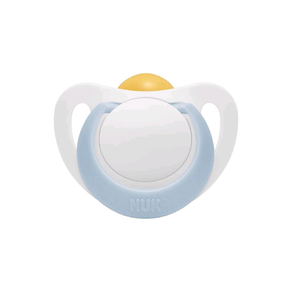 Succhietto in lattice per neonato NUK Star 0-6 mesi. Pratico anello sul succhietto, realizzato in polipropilene di alta qualità, facilmente afferrabile anche dalle manine più piccole. Il succhietto NUK Star è davvero morbido in bocca al bambino. La zona particolarmente morbida sulla parte superiore del succhietto (area con uno strato di silicone assottigliato) si appoggia ancora più comodamente al palato. Allo stesso tempo, la parte inferiore del succhietto NUK Star lascia abbastanza spazio per i naturali movimenti di suzione della lingua. Adatto per il corretto sviluppo della mascella e particolarmente delicato durante l'allattamento - facile alternare tra allattamento e utilizzo del succhietto. Il materiale in silicone trasparente è facile da pulire ed è particolarmente resistente al calore. Non contiene sostanze nocive, è resistente all'ebollizione, inodore, trasparente e ha una superficie liscia. Tutti i succhietti NUK hanno il sistema air-system NUK, che consente alla delicata pelle del neonato di respirare. Taglia 1 (0-6 mesi). Tutti i succhietti NUK vengono regolarmente testati e monitorati da istituti indipendenti. Confezionato in una scatola priva di BPA.