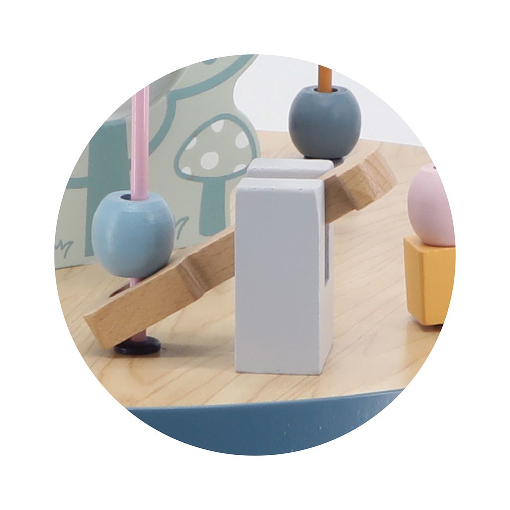 Il tutto è realizzato in legno di faggio e verniciato con colori atossici in tonalità morbide che attirano l'attenzione, stimolano il gioco e offrono tantissimo divertimento. I colori sono 100% sicuri e soddisfano le normative di sicurezza EN71 e ASTM.
