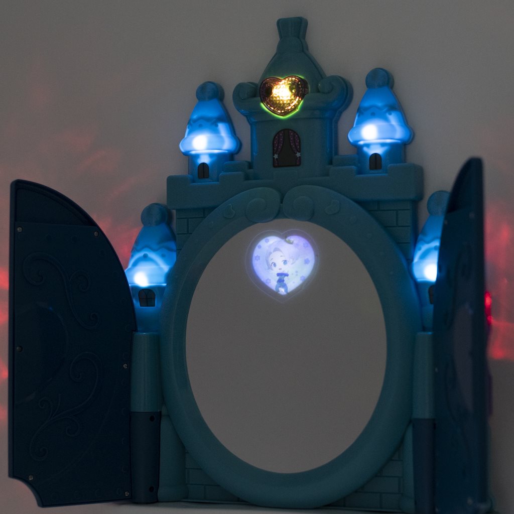 Toilette per bambini con sgabello include un set di cosmetici in miniatura, come phon, pettine, smalti per unghie, anelli, fiori per capelli, braccialetti, collana e adesivi. Il set comprende anche una bacchetta magica; premendo la bacchetta si apre uno specchio. La toilette è dotata di un cassetto per riporre piccoli oggetti. Il set richiede 5 batterie AA, non incluse nella confezione.