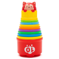 Costruire e smantellare la torre promuove la creatività e l'immaginazione, introducendo il bambino ai concetti fondamentali di equilibrio e costruzione.