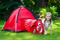 Ottima tenda per bambini Baby Mix Coccinella con tunnel per le vostre coccinelle attive. Ogni bambino ama costruire tende improvvisate con l'aiuto di sedie, tavoli e coperte, con noi non dovrete preoccuparvi. Grazie alla nostra tenda, la vostra principessa avrà finalmente la sua camera dei sogni, il suo regno personale, un rifugio dove potrà godere della privacy o, al contrario, invitare le sue migliori amiche. Che sia nella sua cameretta, in giardino d'estate o in spiaggia, i bambini si divertiranno tantissimo creando i loro mondi immaginari. Il tunnel si inserisce facilmente nella tenda, non è fissato in modo permanente, ed è possibile manovrarlo liberamente. Per l'intero set, tenda e tunnel, è caratteristico il rapido e semplice montaggio e smontaggio. È realizzata in tessuto di alta qualità e resistente. Per bambini dai 3 anni in su.