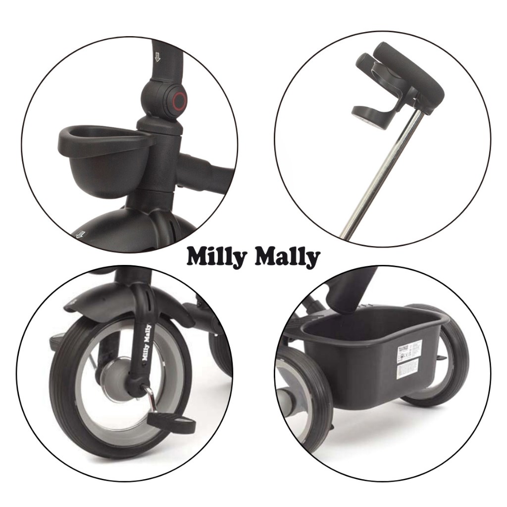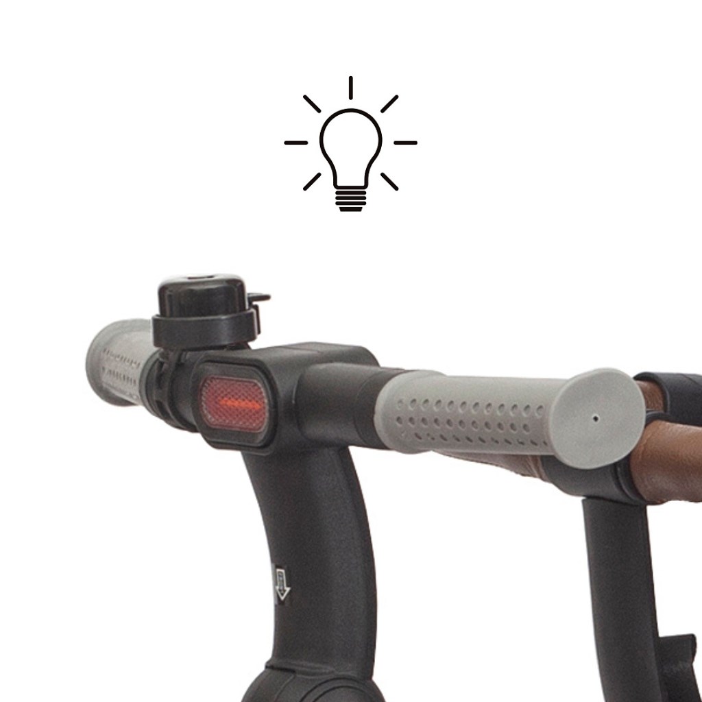 Twinkle è dotata di un manico regolabile, funzione di libero movimento, freni, cinture di sicurezza con coperture e uno schienale ergonomico a tre posizioni, garantendo il massimo controllo e comfort per il bambino e i genitori. Il suo leggero ma resistente telaio in acciaio, le ruote con riempimento in schiuma e cuscinetti a sfera, la struttura pieghevole e pratici accessori come il parasole a rete, la luce a LED, il porta bevande e due scatole di stoccaggio, la rendono una scelta perfetta per ogni occasione - in città, durante una passeggiata o in gita. Rimuovendo il manico, le rotaie e il parasole, Twinkle può essere utilizzata come una bicicletta a tre ruote classica.