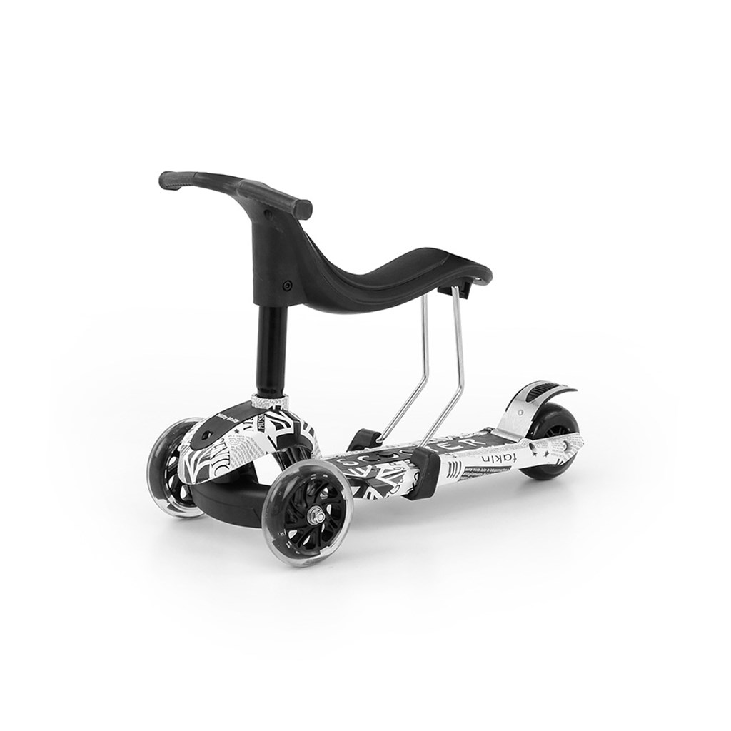 Super stiloso monopattino per bambini Milly Mally Little Star. Non è solo un monopattino, ma anche un'auto a spinta per i bambini dai due anni in su, con sedile e manico per i genitori. Capacità di carico fino a 20 kg. Sia il sedile che il manico possono essere facilmente rimossi e il veicolo diventa immediatamente un monopattino con una capacità di carico fino a 50 kg. È la soluzione ideale per i bambini attivi che sono sempre in movimento. Little Star è realizzato con materiali di alta qualità, ideale per passeggiate e per un grande divertimento. La struttura in metallo garantisce la resistenza del prodotto. Inoltre, il monopattino è dotato di freno e parafanghi sulla ruota posteriore. Il controllo e la manovra funzionano sul principio dell'equilibrio del corpo. Un grande vantaggio del monopattino è costituito dalle 3 ruote, che offrono stabilità e sicurezza. I bambini apprezzeranno anche le ruote anteriori luminose durante la guida. Little Star è 3 in 1, comfort e semplicità in una forma moderna.