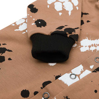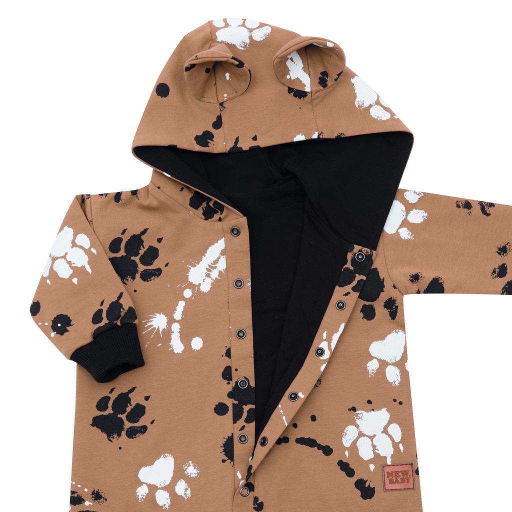 Tutina per neonato in cotone originale del marchio ceco New Baby Paw. La tutina è interamente stampata con un motivo infantile. È realizzata in un materiale di alta qualità in cotone con elastan e una fodera in cotone. Il tessuto è liscio e piacevole al tatto. La chiusura pratica con bottoni a pressione lungo tutta la lunghezza facilita notevolmente il vestire e il cambio. La tutina ha un pratico cappuccio con orecchie, orli elastici più larghi su maniche e gambe e l'intera parte interna è foderata in cotone, che aumenta il comfort di indossarla. Il bambino si sentirà molto comodo e piacevole in questa tutina. Composizione: 95% cotone, 5% elastan, fodera - 95% cotone, 5% elastan. Adatta per primavera e autunno.