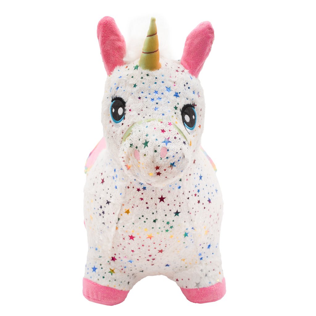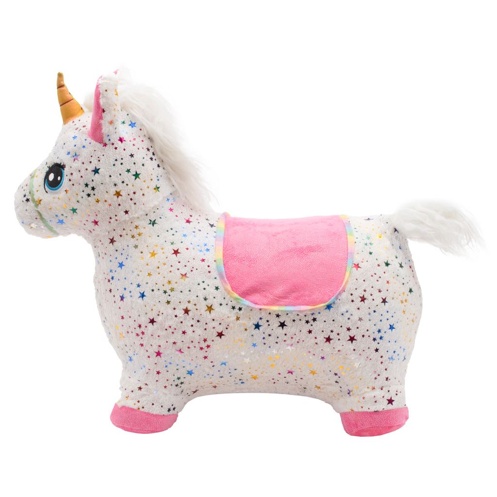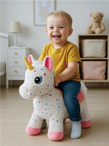 Il pony gonfiabile in peluche garantisce un divertimento duraturo per il vostro bambino. Saltellando, il bambino rafforza le gambe, impara a coordinare i movimenti e a mantenere la stabilità. Il pony si tiene comodamente per le orecchie e contiene un modulo sonoro che emette un suono realistico di cavallo quando viene premuto tra le orecchie. È rivestito in materiale peluche, piacevole al tatto e antiscivolo. Nella confezione è inclusa una pompetta per un gonfiaggio facile e batterie (3xLR44).