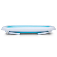 La vasca pieghevole per bambini Milly Mally AQUA è una soluzione pratica e universale per ogni casa, indipendentemente dalle dimensioni del bagno. Basta piegare le gambe e poi il fondo in silicone. È eccezionalmente compatta e conveniente. Il prodotto combina funzionalità e design moderno. È leggera, resistente e, grazie ai piedini pieghevoli antiscivolo, particolarmente stabile. I lati della vasca sono realizzati in plastica morbida e molto piacevole al tatto, completamente sicura per il bambino, non provoca allergie e si pulisce facilmente. Il fondo in silicone della vasca è dotato di un astuto tappo sensibile al calore, che cambia colore in base alla temperatura dell'acqua (oltre i 37°C il colore del tappo cambia). A temperature dell'acqua superiori ai 41°C, il tappo diventa completamente trasparente. Non dimenticate di controllare sempre la temperatura dell'acqua prima del bagnetto.