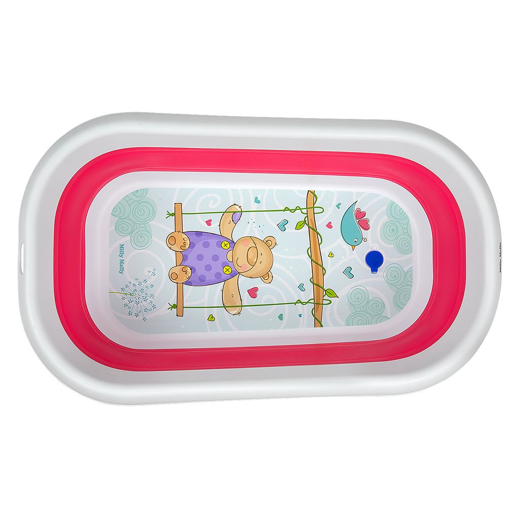 La vasca pieghevole per bambini Milly Mally AQUA è una soluzione pratica e versatile per ogni casa, indipendentemente dalla dimensione del bagno. Basta piegare le gambe e poi il fondo in silicone. È estremamente compatta e comoda. Il prodotto combina funzionalità e design moderno. È leggera, resistente e, grazie ai suoi piedini pieghevoli antiscivolo, soprattutto stabile. I lati della vasca sono realizzati in plastica morbida e molto piacevole al tatto e sono completamente sicuri per il bambino, non causano allergie e sono facili da mantenere puliti. Il fondo in silicone della vasca è dotato di un ingegnoso tappo termocromatico, che cambia colore in base alla temperatura dell'acqua (superando i 37°C, il colore del tappo cambia). A una temperatura dell'acqua superiore ai 41°C, il tappo è completamente trasparente. Non dimenticate di controllare sempre la temperatura dell'acqua prima del bagnetto.